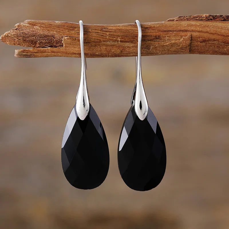 Boucles d’oreilles pendantes élégantes en Onyx noir