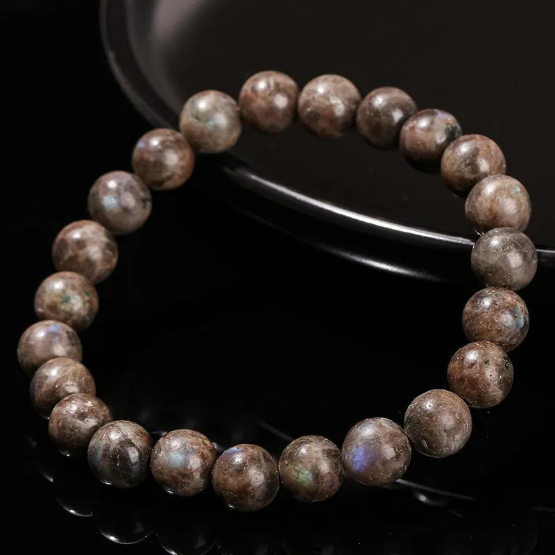 Ce bracelet en spectrolite "café" révèle des nuances chaudes et profondes, sublimées par un poli raffiné. Ses perles lisses captent la lumière pour un éclat subtil tout au long de la journée. Monté sur un fil élastique résistant, il assure un confort optimal au poignet. Un bijou sobre et élégant qui s'accorde à toutes vos tenues.